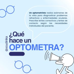 ¿Sabes qué hace un optometrista? El optometrista es el profesional de la salud visual que evalúa tu vista, detecta problemas visuales y te ayuda a ver mejor con la corrección adecuada. En OCUCLINIKA contamos con un profesional en optometría altamente capacitado, que brinda una atención cálida, personalizada y de excelente calidad, porque tu visión merece el mejor cuidado. Ver bien es vivir mejor. Mas información en el numero 322 235 7884.